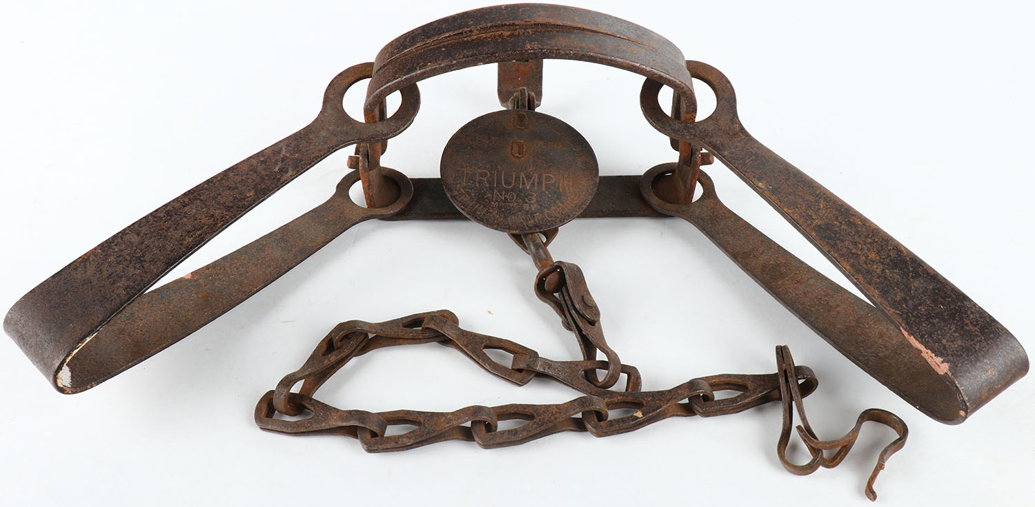 Small Triumph animal trap hard to read pan NO 3. Grade: Excellent - Value: 10 to 50