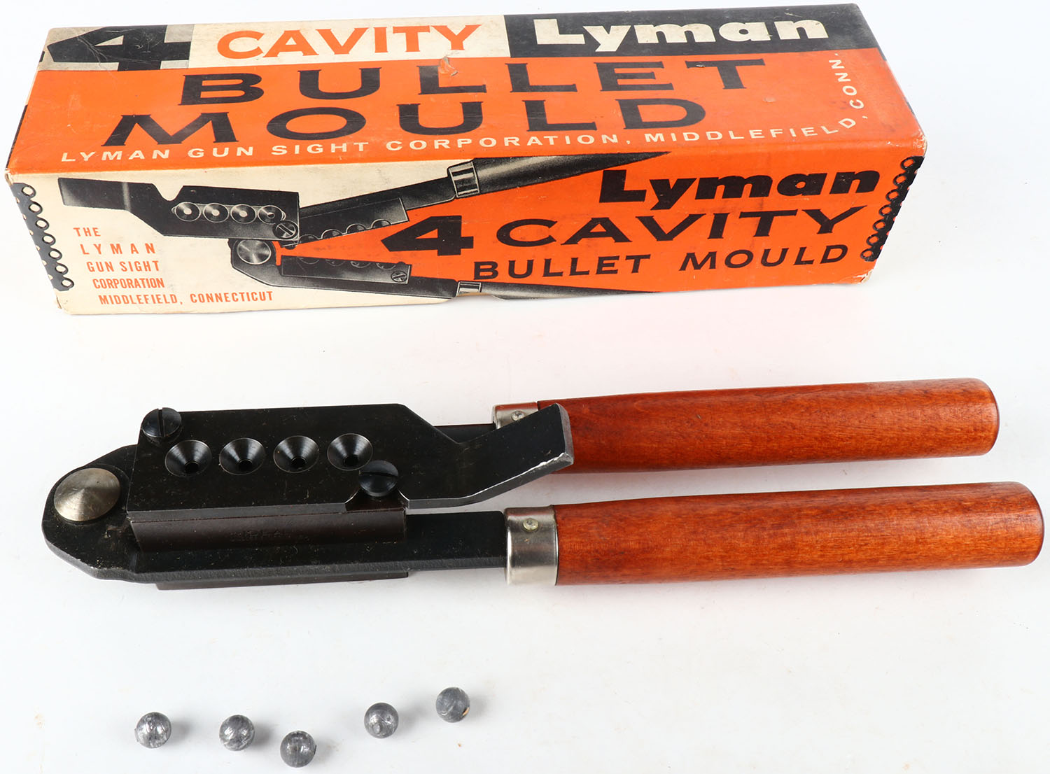 Lyman bullet mould reloading tool, in box, .375 cal 4 cavity round ball moulds. Grade: Excellent - Value: 50 to 100