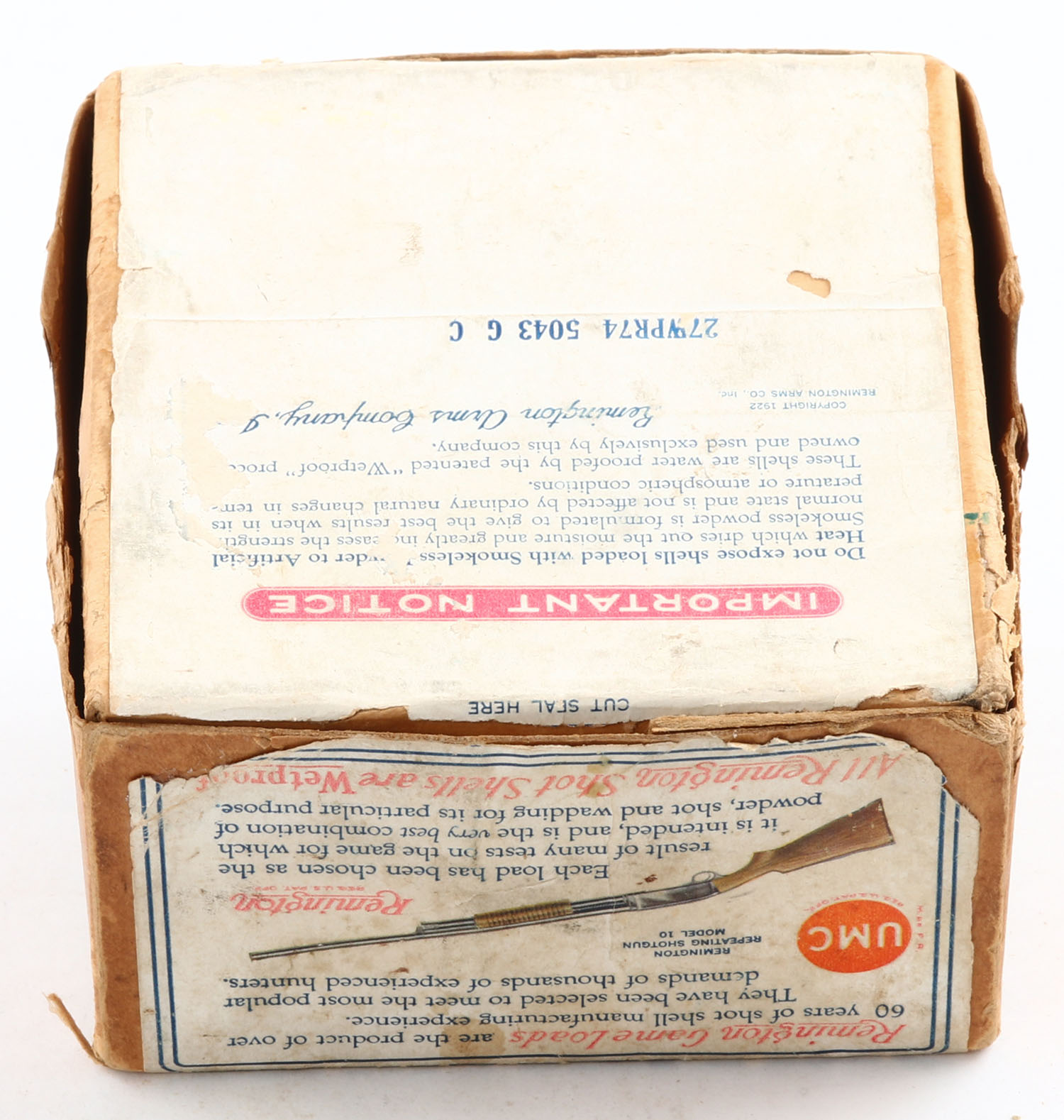 Remington UMC Nitro Club, GAME LOADS, QUAIL LOAD, 12ga., 2pc., Empty, shot size 8 CH, buff box with sunburst logo & QUAIL in flight on side, box has age soiling & edge wear with a minor tear to right side . Grade: Good ++ - Value: 100 to 400