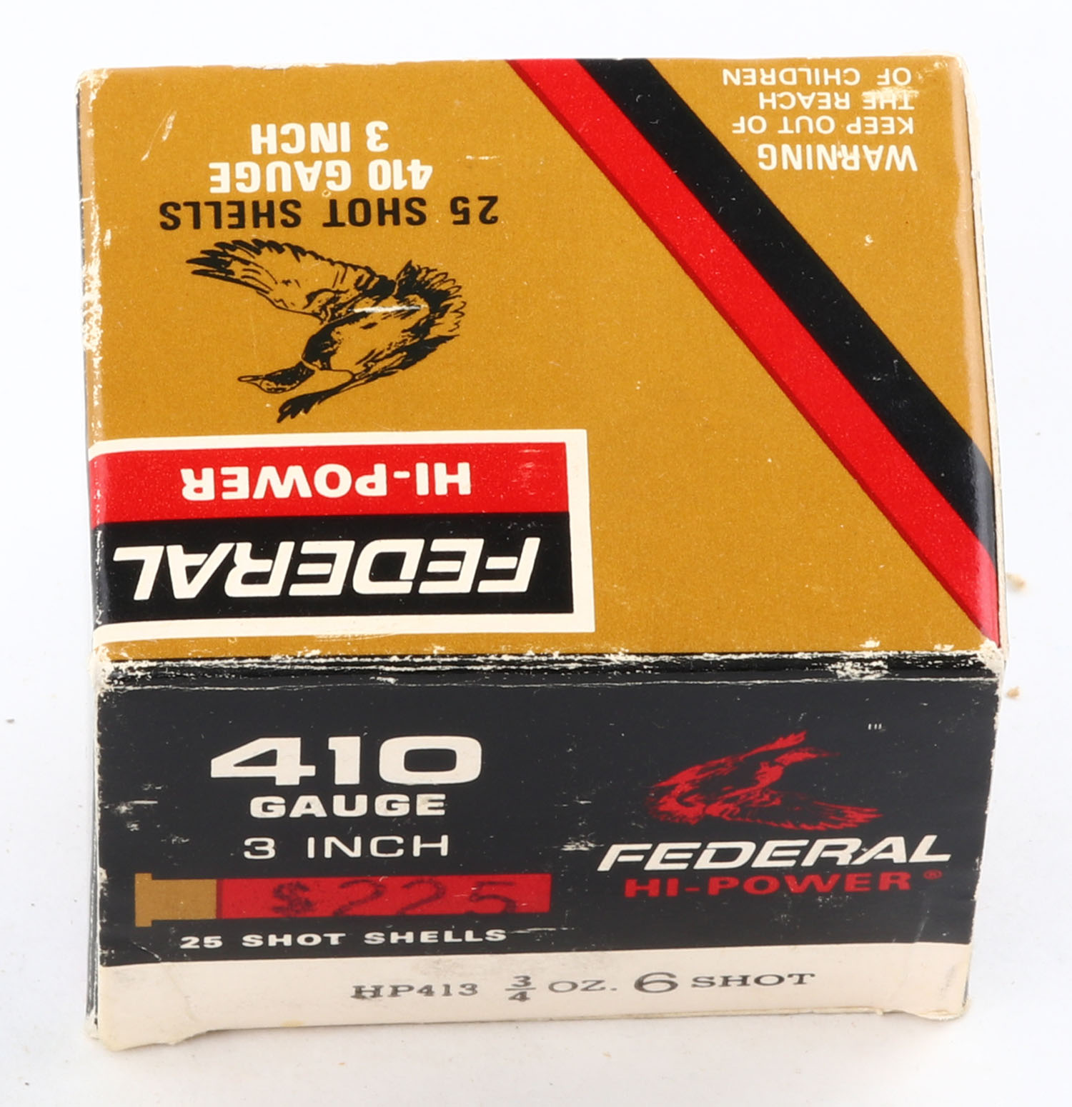 Federal, Hi-Power, 410ga., 1pc., Full, 3'', shot size 6, box is solid with great colors, paper shells are excellent. Grade: Excellent - Value: 10 to 30