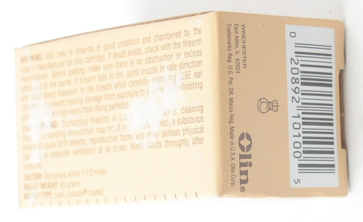 Winchester, 1994 Limited Edition Cartridges, .22 W.R.F. Hollow Point, RHWeb: WRA-H&R-72, WRF-2.5, Full, 1pc. Tan brown & red box with black ''Hollow Point'' over-stamp, box is MINT with minty color, corners are sharp, edges are crisp, end flaps are solid, ammo is minty. Grade: MINT - Value: 30 to 45