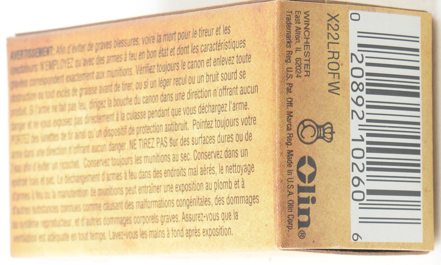 Winchester, .22 Long Rifle, 200 Year Commemorative Box (1810-2010), RHWeb: WRA-H&R-72 LR-10, Full, 1pc. Brown & red box, box is MINT with minty color, sharp corners, crisp edges, solid end flaps, ammo is mint. Grade: MINT - Value: 20 to 30