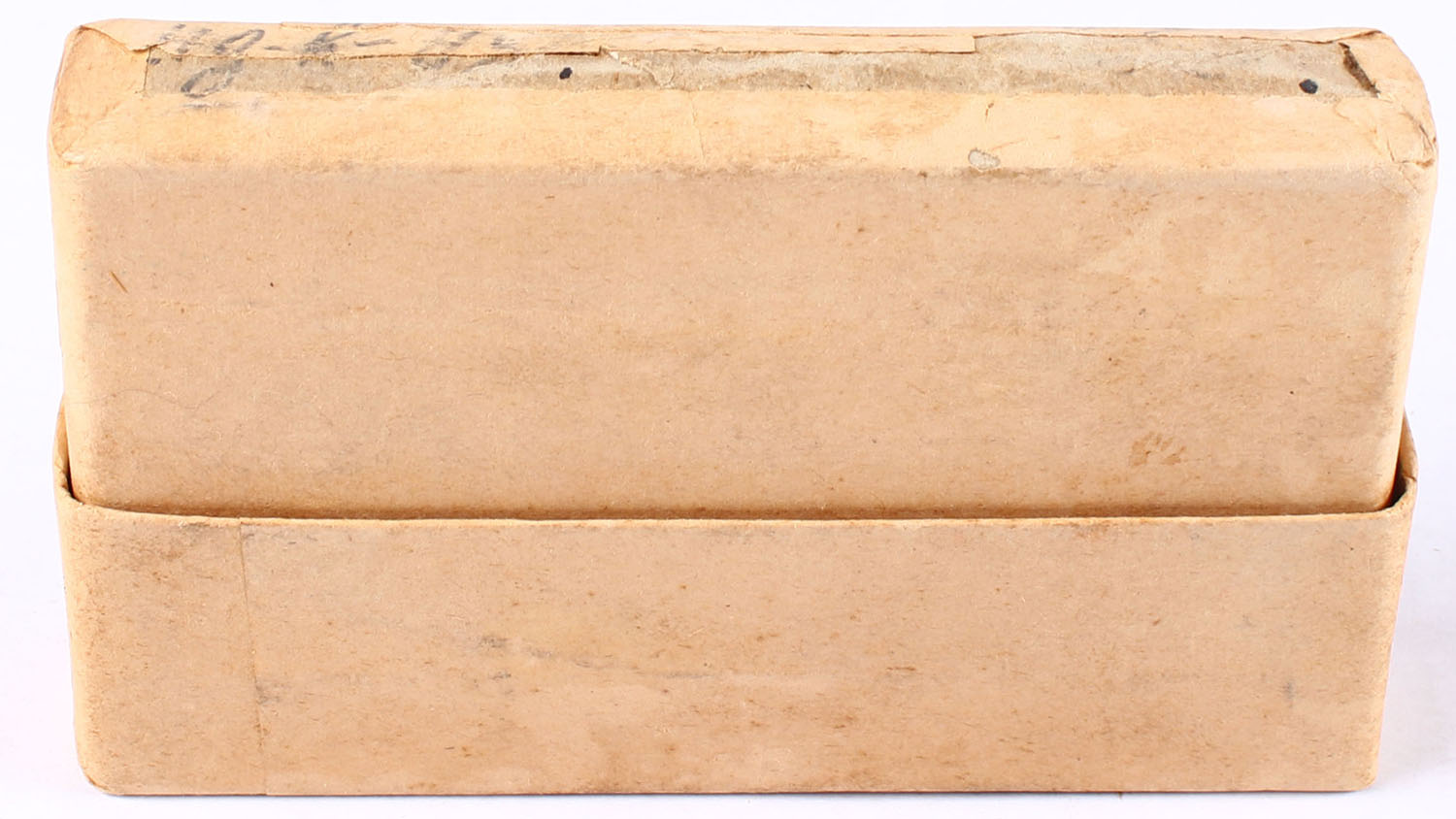 Winchester, Smokeless Cartridges, .30-220, Smokeless, 220 Gr. Soft Point Metal Patched Bullet, Full, 2pc. Buff box with orange labels, box is solid with excellent color, some shelf wear, chipping to top label, minor corner wear, very minor edge wear, labels are 99% intact, ammo is excellent. Grade: Very Good ++ - Value: 30 to 90