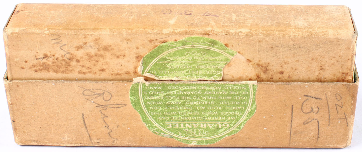 REM-UMC, .40-60 Winchester, 210 Grain Bullet, Partial 3rds plus 10 more with different H/S's, 2pc. Buff box with green labels, box is very solid & label is 98% intact, nice color to label, ammo is excellent. Grade: Excellent + - Value: 30 to 100