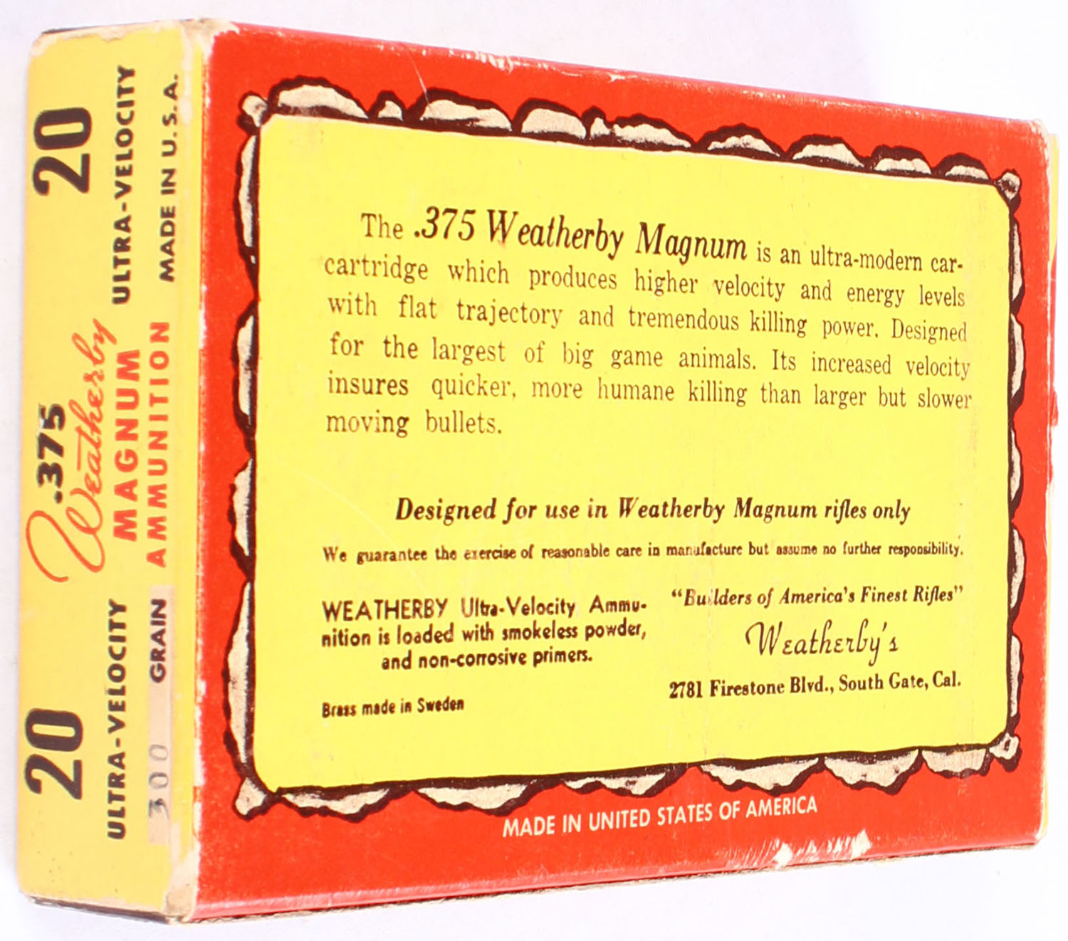 | Weatherby, Ultra-Velocity Ammunition, .375 Weatherby Magnum., 30...