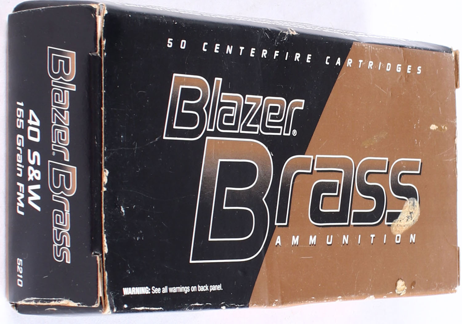 CCI, Blazer Brass, .40 Smith & Wesson, 165 Grain FMJ, Full, 1pc. multi-colored box, box is very solid with excellent color, Ammo is excellent. Grade: Very Good - Value: 10 to 40