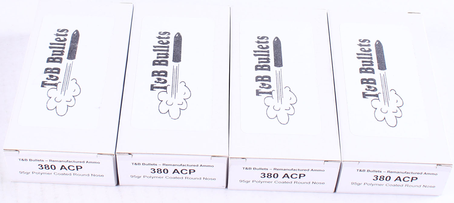 | T&B Bullets, Lot of (4), .380 ACP ammo boxes, Remanufactured Am...