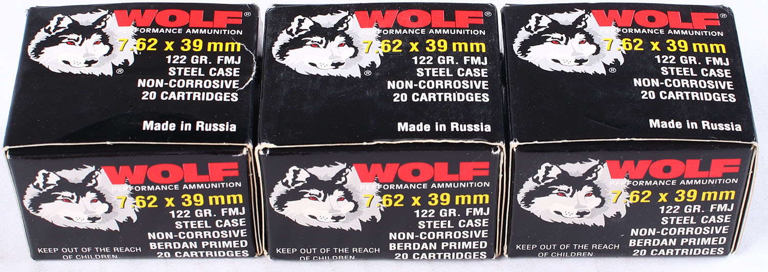 | Wolf, Lot of (3), 7.62x39mm, 122 Grain FMJ Steel Case, Full (60r...