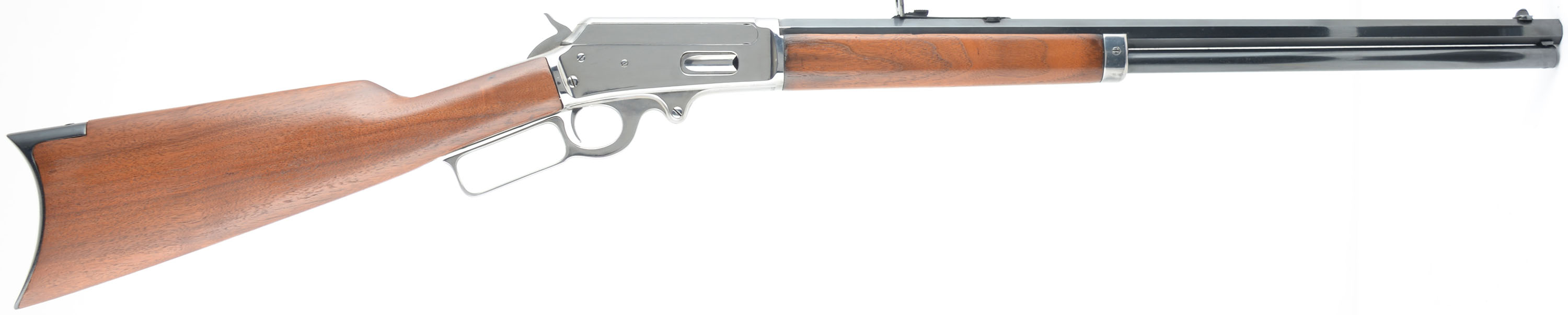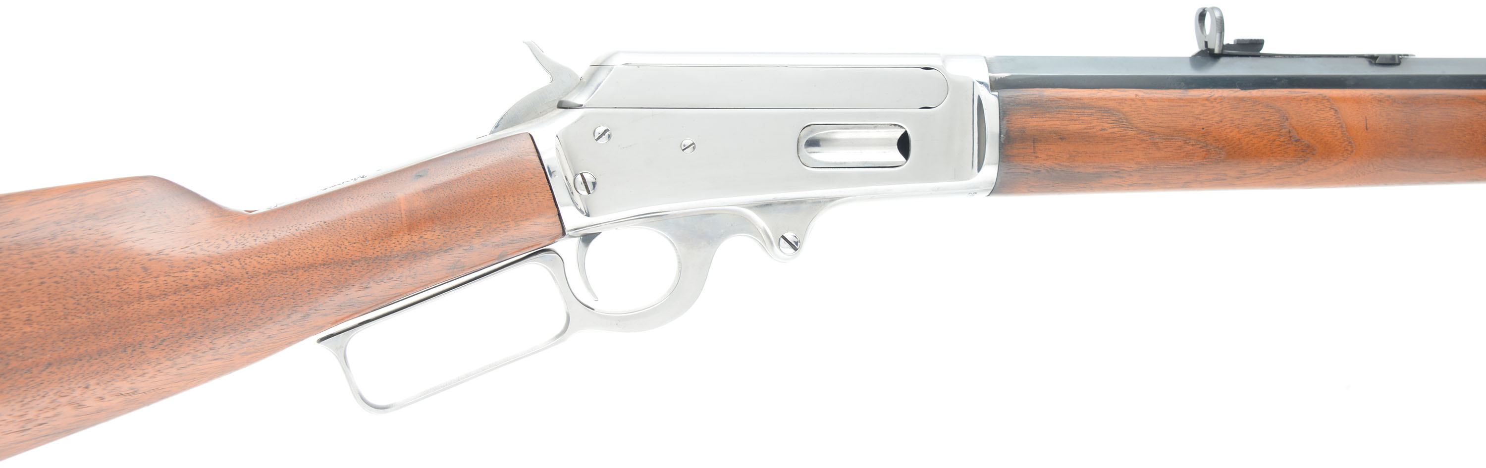 Marlin, Model 1893, .32-40, MFG. 1903, SN: 268568, Lever Action Rifle, 22'' Octagon barrel, Full mag. The wood stocks are excellent & solid, as being previously sanded & refinished. The stock may be a replacement as there are minor gaps at the end of the tangs & against the receiver at the wrist. There are very few minor handling marks remaining. The reblued metal finish on the barrel & mag tube rates 99%. The nickel on the receiver, lever, hammer & forend cap rates excellent. Bore is very good. The barrel carries a full buckhorn adjustable rear & Lyman small blade front sights. Crescent metal buttplate. Tight smooth action. A sharp looking, nicely refurbished old west collectible. FFL or C&R Req. - Value: 800 to 1500