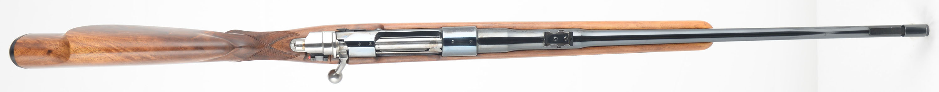 Browning (FN), High-Power Rifle Safari Grade, CAL: 30-06 Sprg, MFG: 1965, SN: 5L34478, Bolt Action Rifle, 22'' Barrel. The original checkered, cheeked & flat pistol grip Monte Carlo walnut stock is excellent, with very few tiny handling marks to the excellent factory finish. Fantastic rippled contrasting grain. The original metal blue finishes rate 98% overall, with slight discoloration & outline from previous scope block mounting in the factory provisions. Engraved floorplate & trigger guard. Bore is excellent. The barrel carries a raised platform rear & ramped hooded front sights. Buttstock carries a Browning plastic buttplate. Factory sling studs. FFL or C&R Req. - Value: 1500 to 2000