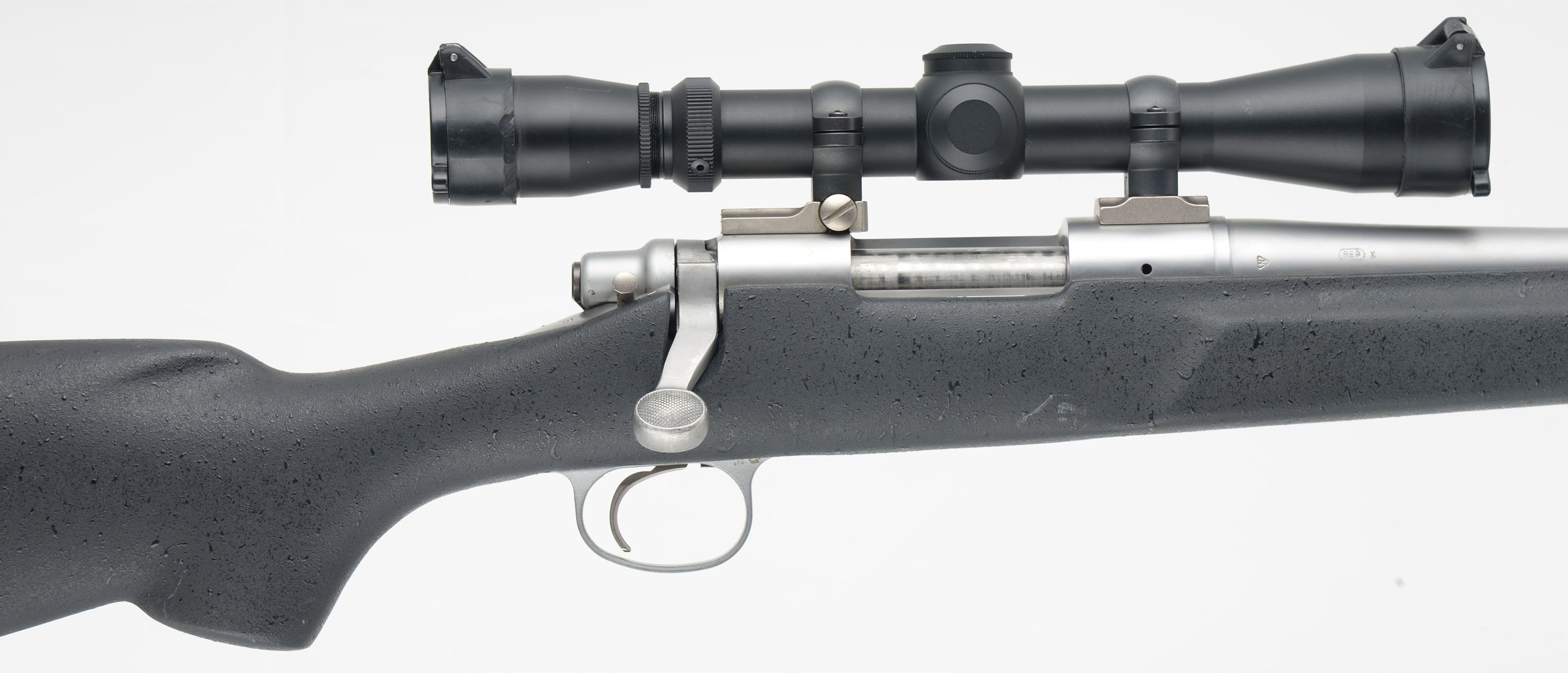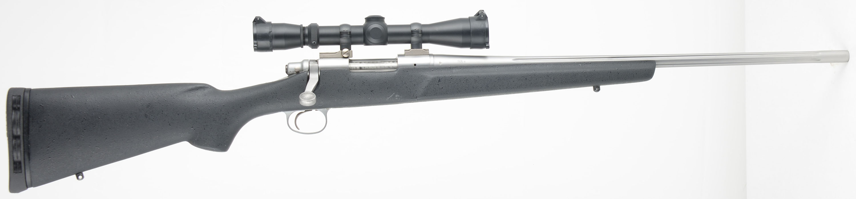 Remington, Model 700 SS Light Varmint, CAL: 221 REM Fireball, MFG: 2003, SN: 56483090, Bolt Action Rifle, 22'' Round fluted barrel, recessed crown. The original cheeked & flat pistol grip gray composite stock is excellent. The factory satin stainless steel metal finish rates excellent overall. Bore is excellent & bright. The receiver holds a Leupold Vari-X 3-9x33mm Compact scope, with flip-up caps, while the barrel has no sight provisions for open sights. Stock carries a solid recoil pad. Jeweled bolt. Internal 4rd magazine. Sling studs. A fantastic all weather varmint rifle. FFL Req. - Value: 1000 to 1500