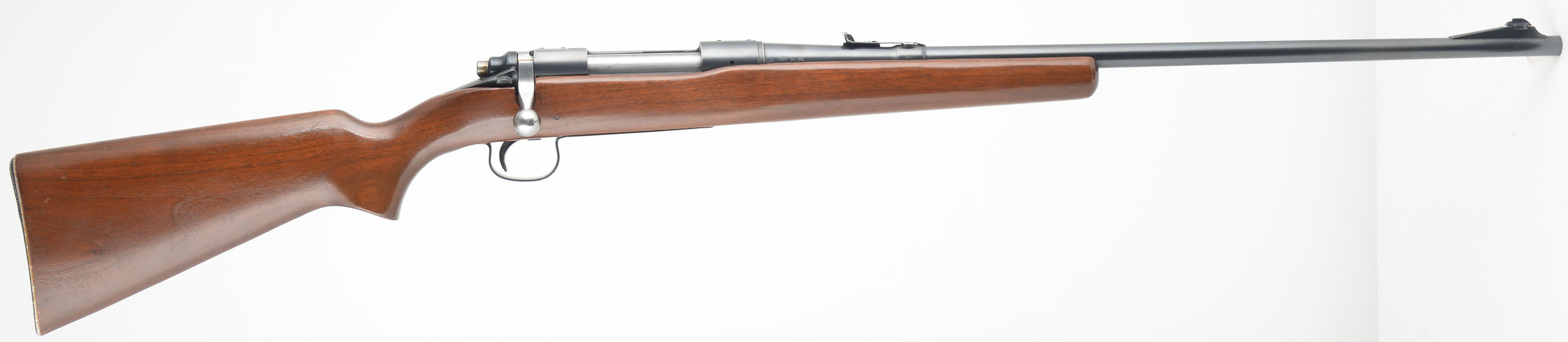 Remington Model 721, CAL: 30-06 SPRG, MFG: 1948-61, SN: 187422, Bolt Action Rifle, 24'' barrel. The original flat pistol grip wood stock is excellent, with several minor scrapes, scratches & contusions to the original finish. There is a spot of touch-up finish to the left side behind the receiver. The metal blue finish rates 80% overall, with some additional thinning on the floorplate. Bore is excellent. The barrel carries the a height adjustable rear & ramped blade front sights. Buttstock carries the correct Remington checkered metal buttplate. A very nice mid century deer hunting rifle. FFL or C&R Req. - Value: 400 to 650