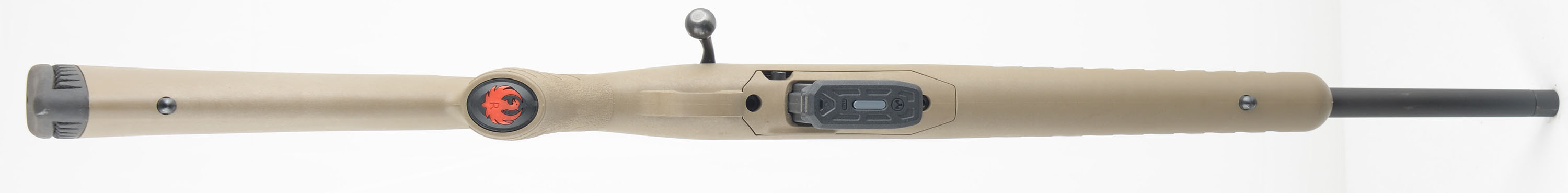 BOXED Ruger Model ''American'' Ranch FDE, CAL: .5.56 NATO, MFG: Modern, SN: 690316921, Bolt Action Rifle, 16 1/8'' Hammer-forged tapered barrel, with capped threaded muzzle tip for possible brake or silencer mounting. The original capped pistol grip, flat dark earth composite stock is excellent. The original matte black metal finishes are 99%+ overall. Bore is excellent. The receiver carries a picatinny rail, while the barrel carries no open sight provisions. Ruger Marksman adjustable trigger. Tang Safety. Black rubber recoil pad, LOP 13.75'' over pad. Ruger detachable extended mag. Swing studs. Comes in the original factory box, with packaging, paperwork & lock. Near new, excellent overall carbine length rifle. FFL Req. - Value: 400 to 600