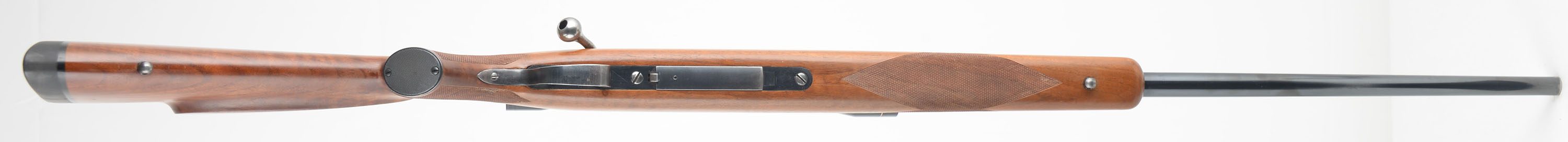 Schultz & Larsen, Model M54J, marked Cal. 7mm Rem Mag, MFG. 1954-57, Otterup Denmark, SN: 2276, Bolt Action Rifle, 25'' Round barrel, The original factory cheeked Monte Carlo wood stock is excellent. The stock features hand cut checkering & a checkered metal pistol grip cap. There are a few minor handling marks or rubs to the excellent original finish. The original metal blue finish rates 90% overall, with the receiver toning a unique burgundy tone. The receiver is fitted with a Leupold Gold Ring Var-X II 3-9 scope, with covers, while the barrel has no provision for open sights. Bore is excellent, Stock carries a Pachmayr Old English solid recoil pad. Factory sling studs. These high quality limited production rifles are desirable amongst hunters & collectors. FFL or C&R Req. - Value: 400 to 800