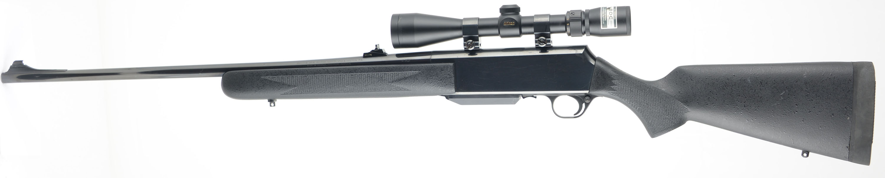 Browning, Model BAR, .300 WIN MAG Cal., MFG. 1981, SN: 137PZ02113, Belgium, Semi Auto Rifle, 24'' Round barrel, The upgraded checkered & flat knob pistol grip, Bell & Carlson Carbelite Classic synthetic stocks are excellent, with a handful of small finish level scuffs or scrapes. The original metal blue is high polished finish retained at 95% on the barrel, 90% on the receiver. Bore is excellent, The receiver is fitted with a Nikon 3-9x-40 scope, while the barrel carries a Williams slide adjusting rear sight & ramped blade front sight. Hinged floorplate, with detachable box mag. The stock has sling studs & a Bell & Carlson solid black rubber recoil pad. LOP 14 1/4'' over pad. A great hunting rifle. FFL Req. - Value: 500 to 800
