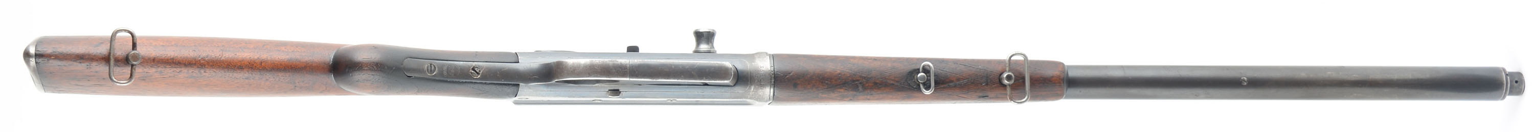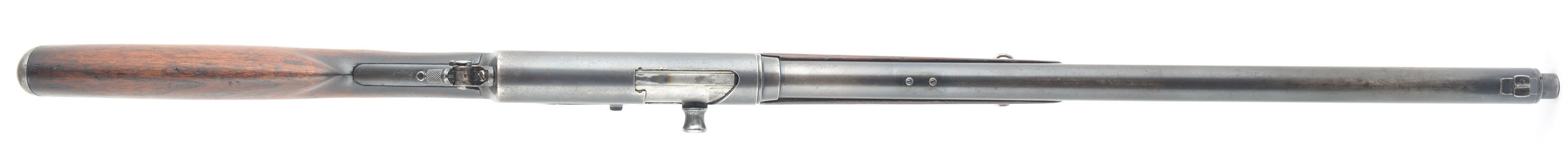 Remington, Model 8 Semi-Deluxe, 30 REM CAL, MFG. 1915, SN: 35818, Semi-Auto Rifle, 22'' barrel. The original round knob pistol grip wood stocks are very good & solid. The hand checkering on the forend has worn thin & smoothed many of the lines, but about half the lines remain visible. The stock has been sanded & reoiled, with the wear & sanding having removed the checkering if it was present previously. The inside of the forend is not stamped with a ''3'' or ''C'' for grade confirmation, which in this case leads to the assumption that this is a special order ''A'' grade that was factory upgraded with checkering, costing the customer an additional $5 at the time of ordering. Sometimes collectors refer to these ''A'' grade rifles with factory checkering as deluxe or semi-deluxe rifles. This rifle does displays a bit of wave to the grain & does carry 20 lines per inch checkering with borders. The original finish on the forend has worn away & has been reoiled, which has darkened the wood. There are several minor scrapes, scratches & contusions to the stocks. The original metal blue finish remains at 60% overall, with loss due to wear & density thinning developing a thin brown patina. The receiver carries a Lyman tang sight, while the barrel has filler screws in the rear sight provisions & a standard front blade sight. Bore is very good, with strong rifling. The left side of the barrel carries not only the manufacture date stampings, but a repair codes from where the rifle was returned to the factory for unknown repair or upgrade. These repair stampings typically are a 3 or 4 digit code ending in ''3'', in this case ''BT3''. Stock carries one of the rarest of the buttplate options, the checkered reverse teardrop Remington UMC metal buttplate. 5 rd fixed magazine. Period sling loops in the stock & forend. Smooth tight action. A rarer checkered rifle that has seen some time in the woods, but remains a good example of a special ordered hunting rifle. FFL or C&R Req. - Value: 600 to 1000