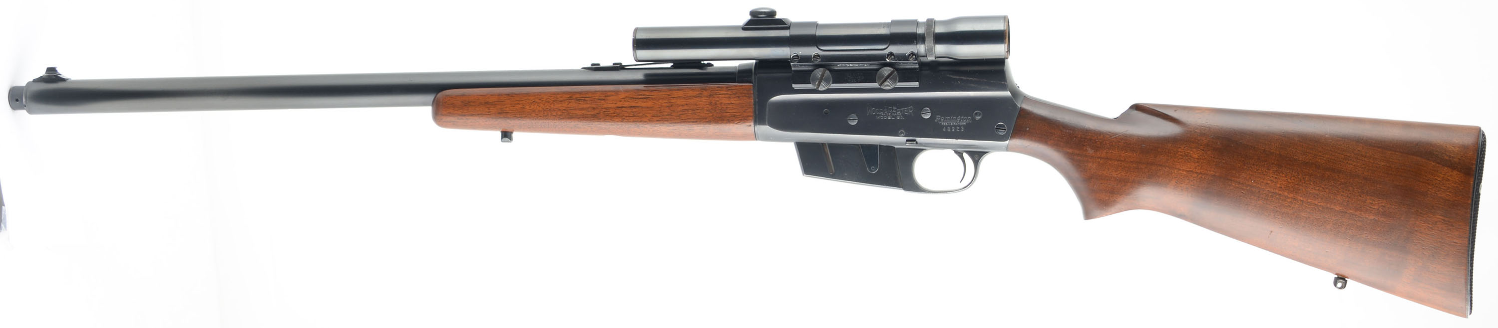 Remington, Model 81, 35 REM CAL, MFG. 1949, SN: 48923, Semi-Auto Rifle, 22'' barrel. The original flat pistol grip wood stocks are excellent & carrying the original finish, with a thin protective added layer. There are very few minor handling marks to the finish. The original metal blue finish rates 95% overall. The receiver is mounted with a Weaver K2.5 scope on Weaver mounts, while the barrel carries standard rear & front sights. Bore is excellent. Stock carries the Remington checkered metal buttplate. 4 rd fixed magazine. Sling studs in wood. An excellent condition rifle nicely set up ready for the hunt. FFL or C&R Req. - Value: 800 to 1200