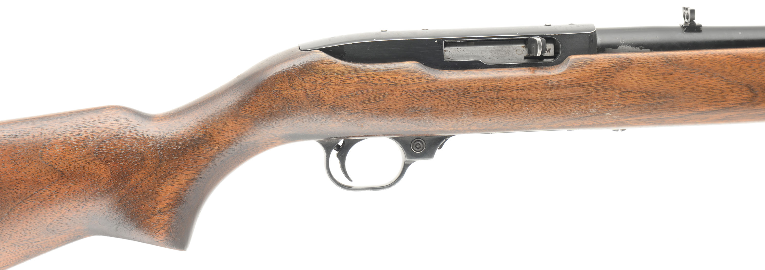 Ruger, 10/22, CAL: 22 LR, MFG: 1971, SN: 110-67282, Semi Auto Rifle, 18 1/2'' Barrel. The factory Ruger wood stock is very good with some handling wear and dings. The black finish on the receiver, butt plate, and barrel is good with some wear flaking. Bore is excellent, the rifling is bright and strong. Mechanically solid, seems to function well. A flip up elevation adjustable rear sight and fixed front sight are set in dovetail cuts on the barrel. Comes with a 10 round Ruger 10/22 magazines. FFL or C&R Req. - Value: 200 to 600