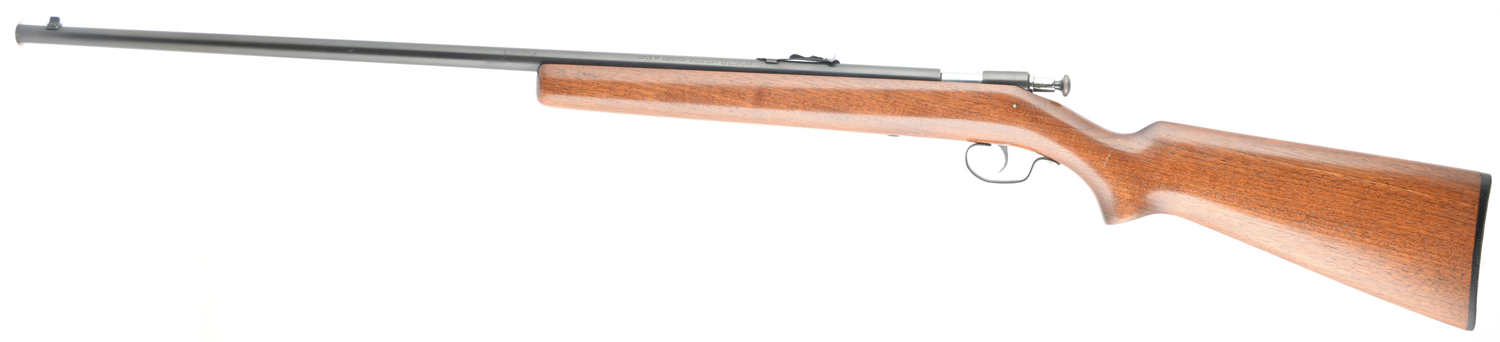 Winchester, Model 67A Sporting, CAL: 22 S,L,LR, MFG: 1949-63, SN: NONE, Bolt Action Rifle, 27 1/8'' barrel. The original flat pistol grip stock is excellent, having been expertly refinished, with a couple light scratches to the excellent finish. The metal blue finish on the barrel/receiver rates 90%, with a couple of areas touched up after cleaning of light pitting. Bore is excellent. Standard adjustable rear sight & blade front sight. Winchester checkered plastic buttplate. Chromed bolt, bolt handle & trigger. Excellent overall appearance. FFL or C&R Req. - Value: 300 to 500