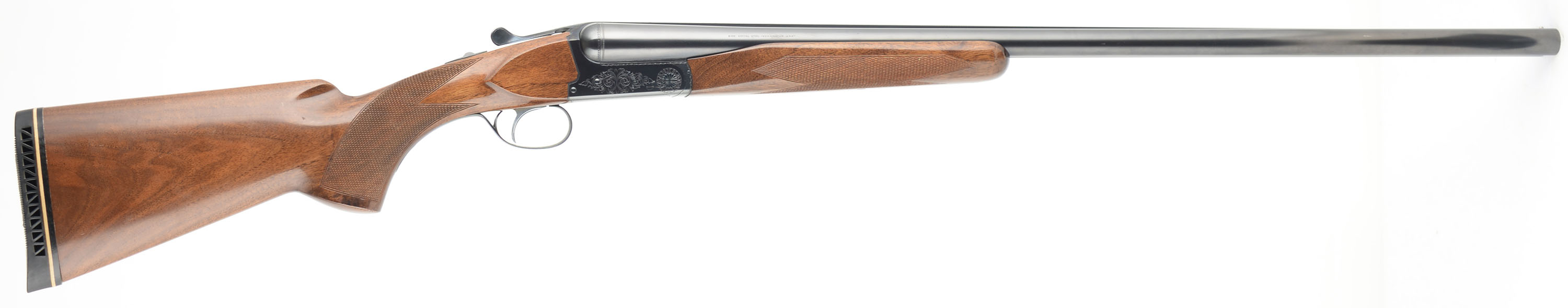 Browning, B-S/S, CAL: 12GA, MFG: 1972, SN: 5840A72, Break Action SxS Shotgun, Choke: IC/F, 2 3/4'' Chamber, 28'' barrels. Standard factory markings on the barrel, receiver & water table. The original checkered flat pistol grip stock & beavertail forend are excellent. There are only minor handling marks to the high gloss finish & a couple dings to the forend checkering. The original metal blue finish on the barrels rates 95% & the receiver rates 98%. The receiver has simple roll stamp engraving. Bores are excellent. The solid matted rib holds a single front bead. Stock carries a ventilated black rubber recoil pad. Single trigger with selector. Mechanically excellent. FFL or C&R Req. - Value: 1000 to 1700