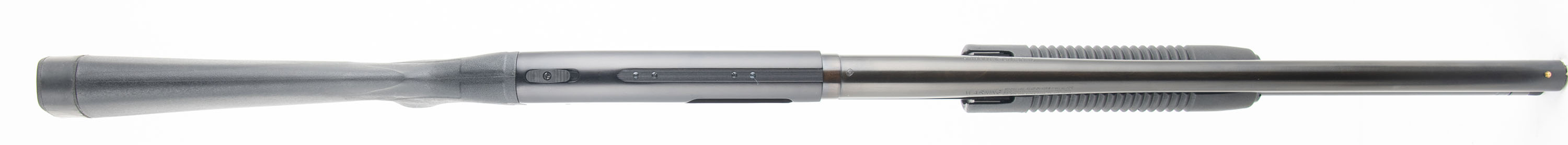 BOXED Mossberg, 500 Persuader, CAL: 12 GA 2 3/4'' or 3'', MFG: Modern, SN: T500162, Pump Action Shotgun, Choke: CYL+, 20 3/4'' Barrel (No Rib). The black plastic stock and forend are excellent. The black finish on the gun is excellent. Bore is excellent, very bright and smooth. Mechanically solid, seems to function well. The barrel holds a front bead sight. The stock has a sling stud, the end cap of the magazine tube is threaded for a sling stud but does not have one. The stock has a recoil pad. LOP is 14 1/2'' over pad. Comes in the serially matched factory box with a sling stud, a lock, an owner's manual, and other related paperwork. FFL Req. - Value: 150 to 400