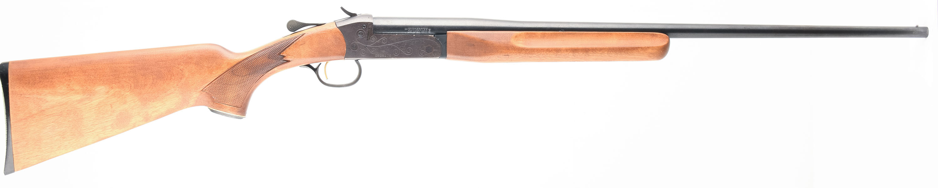 Winchester, Model 37A, CAL: 410 GA 2 1/2'' or 3'', MFG: 1973-79, SN: C528173, Tip Up Single Shot Shotgun, Choke: Full, 26'' Barrel. The checkered wood stock and forend are excellent, solid with light handling wear. The blued finish on the frame has toned to a brown patina with some exposed gun metal grey in on the corners. The blue on the barrel has some rust speckling and very light speckled clean pitting. Bore is excellent, bright with very light roughness near the chamber. Mechanically solid, seems to function well. The barrel holds a front bead sight. The stock has a checkered plastic Winchester buttplate. LOP is 14''. FFL Req. - Value: 150 to 400