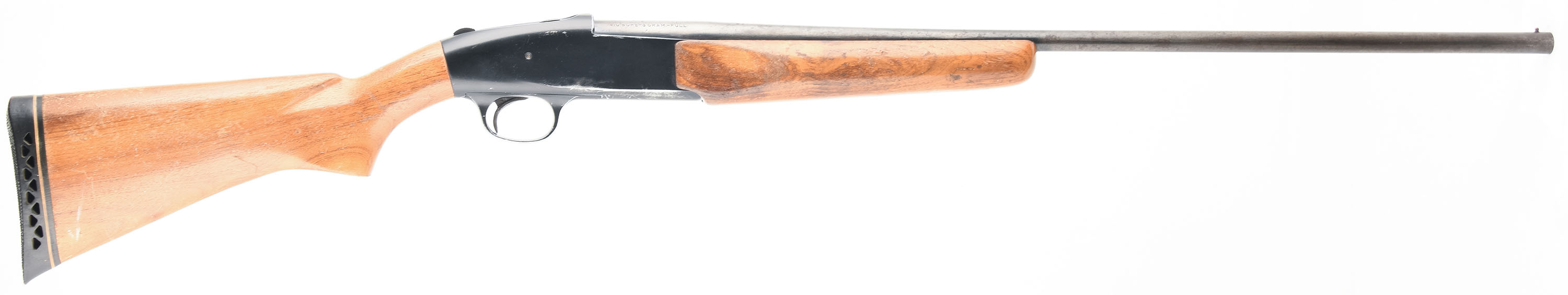 Hawthorne-Montgomery Ward's, Model 110 (EJW-110), CAL: 410 GA 3'', MFG: 1950's-60's, SN: None, Tip Up Single Shot Shotgun, Choke: Marked Full (Measures Imp Mod), 26'' Barrel. The wood stock and forend are good solid with some chips, dings, and scratches. The glossy finish has worn thin leaving some exposed wood. The black finish on the receiver has worn away on some of the edges and corners exposing gun metal grey. The blued finish on the barrel has worn and toned to a mix of original blue, brown patina, and gun metal grey with light rust speckling. Bore is excellent, bright with light roughness near the chamber. Mechanically solid, seems to function well. The barrel holds a front bead sight. The stock has a ventilated and textured hard plastic buttplate. LOP is 12 1/2''. FFL or C&R Req. - Value: 80 to 160