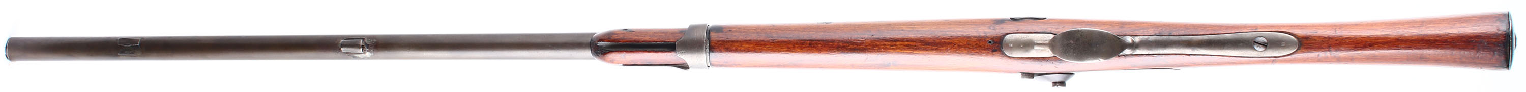 HISTORY: This rifle started life as MLE 1822 .69 Caliber (17.5mm) smooth bore flintlock musket. After France adopted the MLE 1840 which switched from a flintlock Charleville style action to the percussion ''Back Action''. France would in turn start converting older flintlocks with the new Percussion system, converted rifles are noted by having a ''T'' for Transformed added to the model on the gun. These systems were all .69 Caliber smooth bores. In 1846, French Military Instructor & Inventor Claude-Etienne Minie would invent the Minie Ball Which allowed Rifles to be loaded as quickly as smoothbore musket, but retain their rifle accuracy. France would later issue their first Rifled musket for the mainline infantry the MLE 1857 & the older smoothbores were rifled, making their bores 18mm, these would be marked 18mm & have a T added onto it model. Frane went through many small updates & changes during this time with their muskets & rifles so there are a lot of small variations of markings & style from surviving guns. Large numbers of these French muskets were imported just before & during the civil war for both the Union & Confederacy. People had mixed opinions on them because the rifles were a mix of perfectly fine rifles, & some which were unsafe to shoot. France was starting to switch to a breech loading rifle at this point so saw the Civil war as the perfect opportunity to off load all their unwanted older muskets, leading to them being in different states of disrepair, some being smoothbores, some being converted rifles, some older flintlocks, & converted percussion guns. France would later convert many of their muzzleloaders to a breech loader with the Tabatieres system. These would see use with France during the France Prussian war of 1870 alongside the MLE 1866 Chassepot. Many of these were converted to shotguns mostly in Belgium but some were done in France, & then sold on the US market around 1880's-1900 as cheap trade shotguns usually under the name ''ZULU'' or ''HUNTER''. This rifle here appears to be a Mle 1840 that was later bored with rifling, but the barrel & barrel tang markings are illegible.