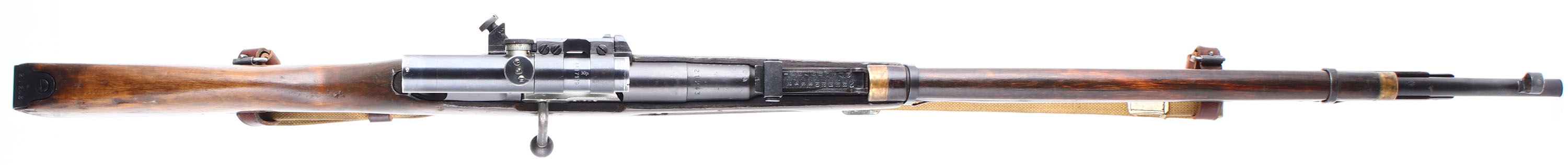 Izhevsk, M91/30 PU Mosin, Cal: 7.62x54mmR, MFG: 1944, S/N: 21243, Bolt action rifle, 29'' barrel. The straight wrist wood stock is good with various nicks, dings, dents, chips, & scratches from use/age. A stock lacquer has been added over the wood. Faint roundel cartouche on right cheek of stock. Metal parts in the stock like the recoil lug, forend cap, & sling well escutcheons have some rust & roughness. The metal carries a arsenal refinish & rates 90% overall with almost full coverage, just has spots of wear/thinning. metal has roughness/pitting scars under the finish & many markings have been worn/buffed away. The barrel shank is marked with the scope S/N ''44 1 4888'', a arsenal refurbishment diamond marking, the S/N and many faded proofs, the ''1944r'' marking is mostly gone with just the edges barely visible. The Izhevsk markings are gone off the barrel shank. The S/N appears to have been restamped as it would have been obliterated with the other markings. the underside of the receiver tang marked ''1944'' & with the Izhevsk arrow in triangle logo. No visible import markings. S/N matching bolt & buttplate, mismatched magazine floor plate. bolt body & its components marked ''02'' for Hungarian MFG at FEG in Budapest, indicating this might be a Hungarian rebuilt M91/30 PU. The bore is good to fair. It has strong rifling but with roughness throughout the bore & is beginning to darken. The barrel holds a post front sight with protective globe (loose in dovetail), U-notch leaf rear sight marked 1 to 20. The receiver has the Kochetov mount, PU scope rings, & PU scope mounted. PU scope rings are marked two faded Russian proofs. PU scope is a factory 237 NKV (Kazan) MFG & is number ''4417179'' (does not match rifle). They made PU scopes in 1943-44, & the majority were the SVT tube PU scopes, only a few thousand Mosin Tube PU scopes were made just before production ended in 1944. Total scope production for them would be less than 40,000. The stock carries a blued steel buttplate marked with the S/N on the upper extension. Roughness under the finish & light finish wear on edges. The stock has both sling wells & has a period correct Canvas sling with the leather ''dog collars''. Rifle also has a cleaning rod. A possible Hungarian Rebuilt PU Mosin that shows here honest wear & scars. FFL or C&R Req. - Value: 600 to 1400