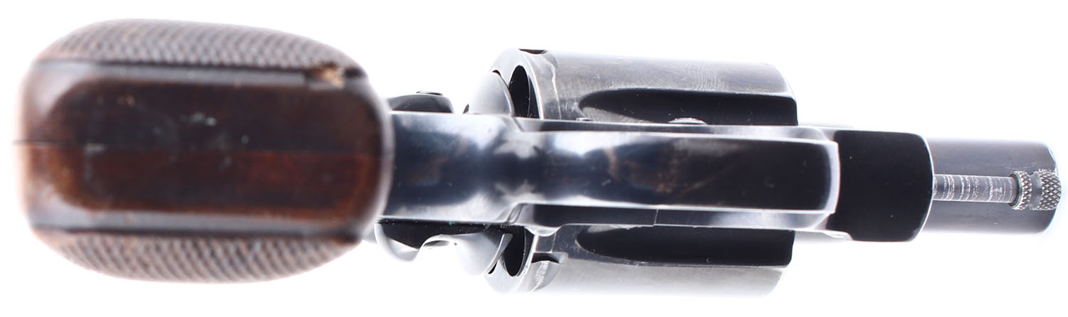 Colt, Detective Special: Post War, Second Issue, CAL: 38 SPL, MFG: 1964-68, SN: 960336, Double Action Revolver. 2'' barrel. The checkered wood grips with colt medallion are in very good condition with some handling wear and a small chip on the bottom of the right grip panel. The blued finish rates 94% with light handling wear, most notably the backstrap has worn down and toned to a mix gun metal grey, brown patina, and original bluing, there is also a ding on the end of the barrel near the muzzle. Bore is very good, the rifling is thin but bright. Mechanically poor, the cylinder and trigger mechanism seem to be out of time and will require professional gunsmithing to function properly. Blacked out sights, front sight is integral to the barrel, rear sight is cut into the frame. SOLD AS IS, NO RETURNS. FFL or C&R Req. - Value: 300 to 600