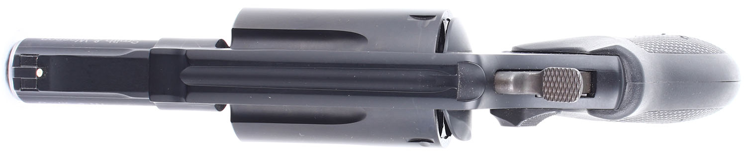 BOXED Smith & Wesson, Governor, CAL: 410GA/45Colt/45ACP. MFG: Modern. SN: CUF2789, Double Action Revolver. 2 3/4'' barrel. The factory rubber grips are in very good condition with some handling wear. The factory black finish is excellent with light handling wear. Bore is excellent. Mechanically solid, the cylinder has some side to side & back & forth play. Front white dot sight (possibly a night sight at some point, does not glow any more) is set into a dovetail cut on the barrel, rear trough sight is cut into the frame. Comes in the SN matched Smith &Wesson cardboard box, with a set of frame lock keys, moon clips (For 45ACP), an owners manual & other related paperwork. FFL Req. - Value: 500 to 800