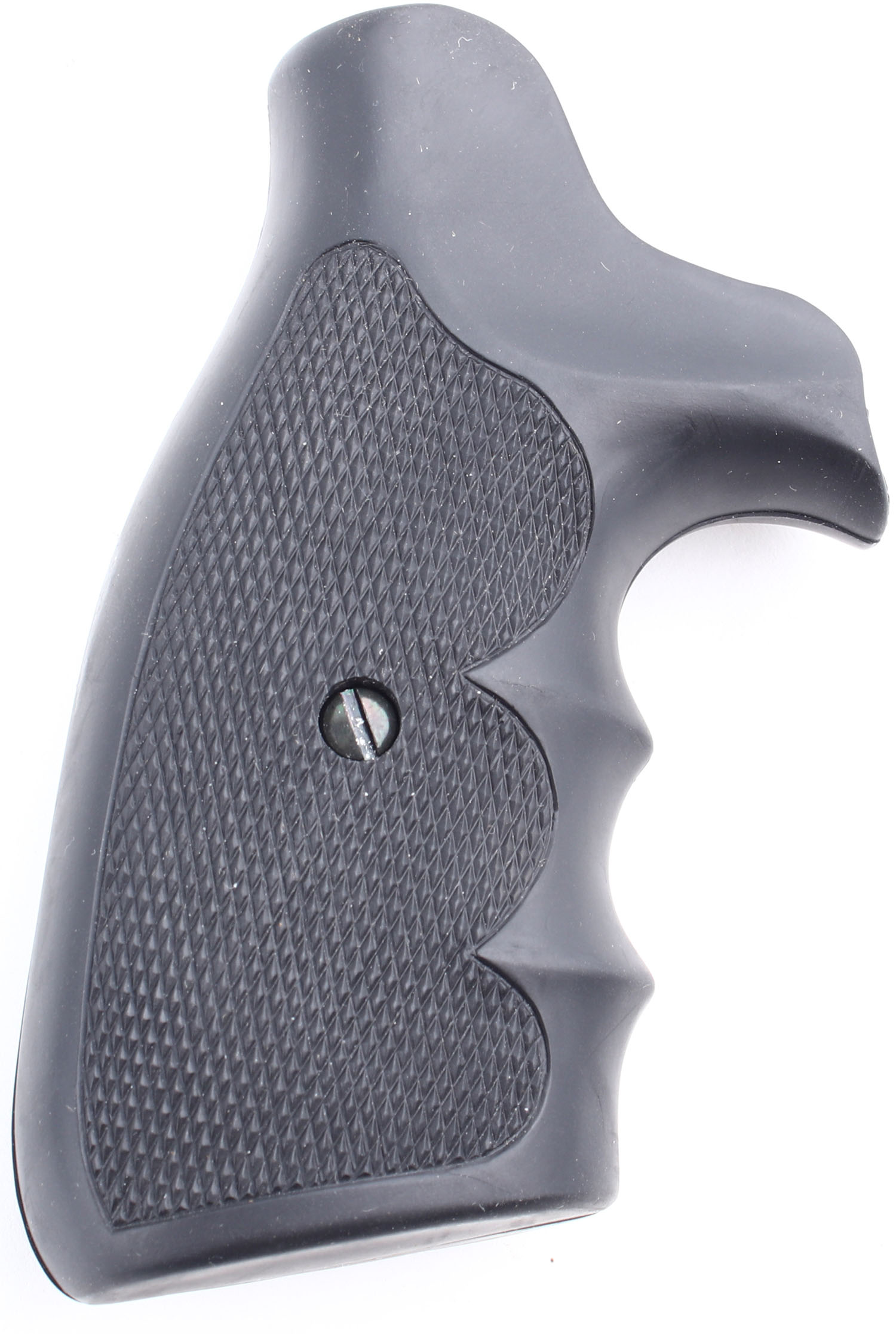Taurus, M82, CAL: 38 SPL. MFG: 1982-Modern. SN: MC754315, Double Action Revolver, 4'' barrel. The checkered wood grips with taurus medallions are in very good condition with some handling wear and dings. The right grip has a couple of gashes surrounding the checkering and a couple of small dings on the bottom and sides. The bluing on the gun rates 97% with light wear, there is light holster wear on the end of the barrel and light handling wear on the backstrap of the grip frame. The case hardening on the hammer and trigger is very good but slightly faded. Bore is very good, slightly thinned but very bright with little to no roughness. Mechanically solid, the cylinder has some side to side & back & forth play. Rudimentary sights, serrated front ramp sight with white paint is integral to the barrel, rear trough sight is cut into the frame. Comes in a generic black plastic case with a set of rubber finger grooved grips that fit well and are in good condition. FFL Req. - Value: 150 to 300