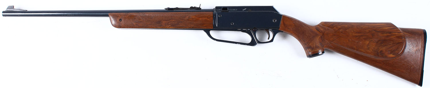 Daisy, Model 880 Powerline, CAL: .177 Pellet or BB, MFG: 1960's SN: NA, Multi-stroke pump pneumatic, 21.5'' Barrel. The cheeked, checkered & capped pistol grip plastic stocks are excellent. The metal blue finish rates excellent. Metal pump lever. Fitted with a factory adjustable rear & blade front sights. Stock carries a plastic buttplate. Appearance is excellent. No FFL Req. - Value: 20 to 50