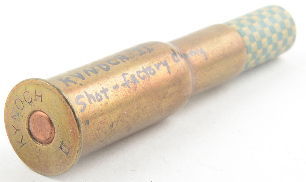 .577/450 Martini Henry. HS:''K II'', DUMMY SHOT, paper sabot in blue & white checks, copper primer present. Grade: Excellent - Value: 60 to 120