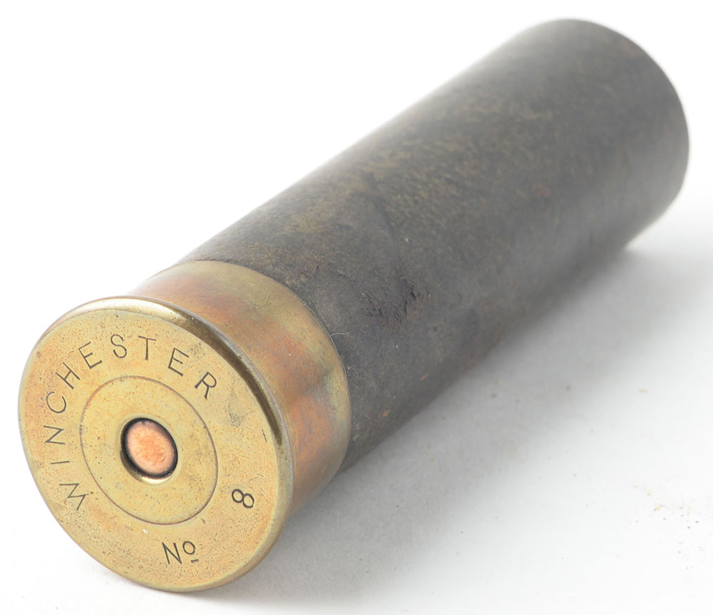 | Winchester 8ga, empty black paper case, 3 1/4'' OAL. Grade: V...