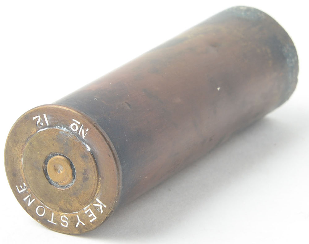 RARE Keystone 12ga, empty brass shotshell, 2 5/8'' OAL. Grade: Very Good - Value: 20 to 80