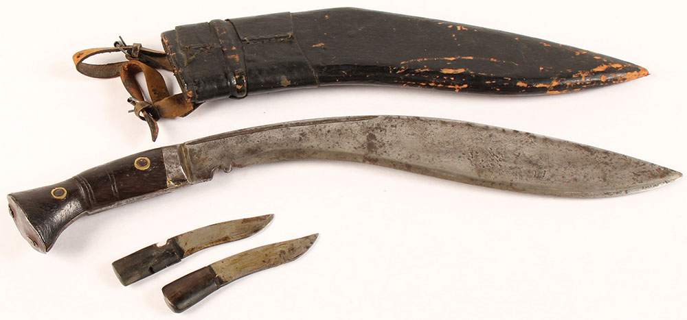 | Nepalese, Kukri with Karda & Chakma set with a leather sheath. ...