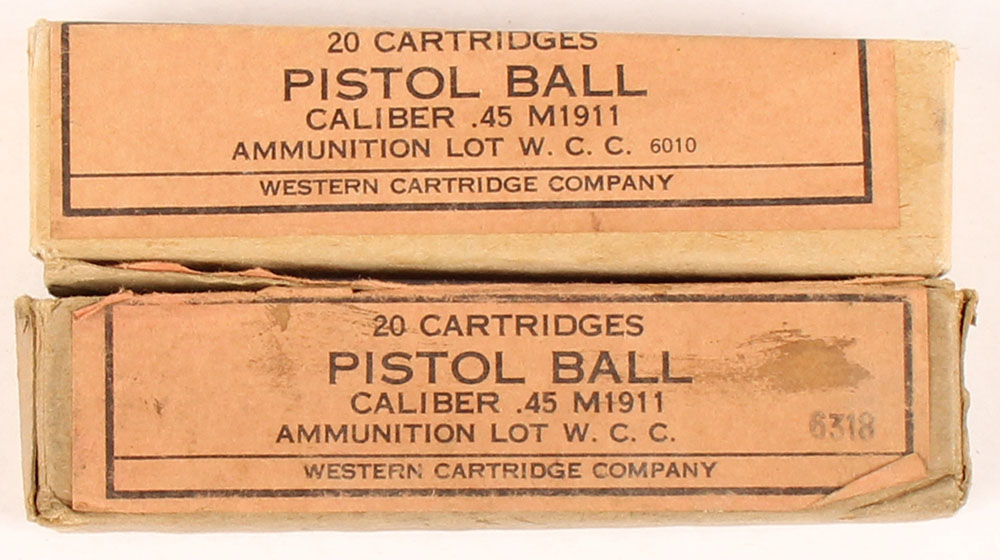 | Lot of two, Western, .45 M1911 Pistol Ball (.45 ACP), one FULL ...