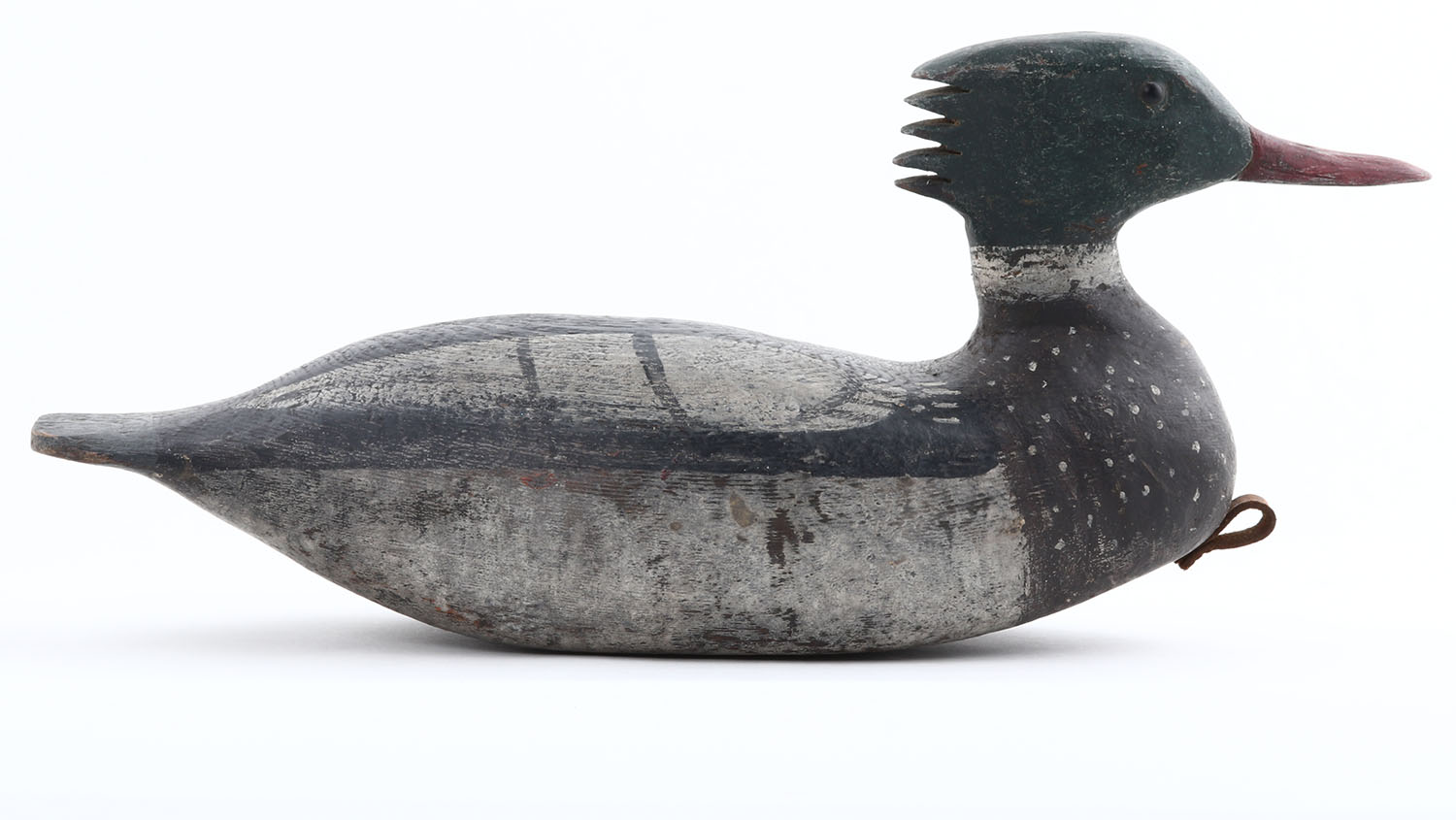 Hooded Merganser Drake by R.W. Schaap, GE, solid cedar wood, original paint, structurally excellent, signed on bottom, 16'' OAL. Grade: Excellent - Value: 150 to 400