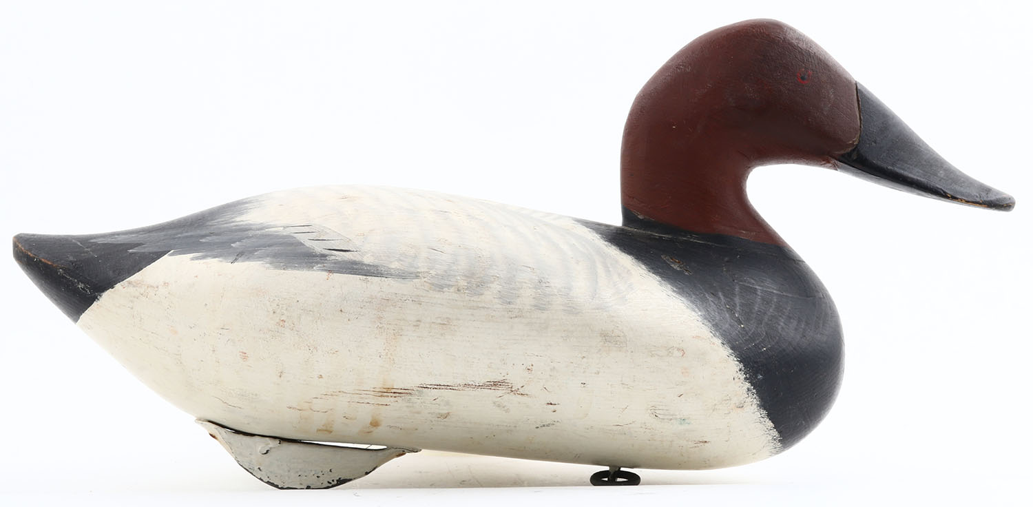 Canvasback Drake by unknown maker from, MD , painted eyes, solid wood, original paint, structurally excellent, 15'' OAL. Grade: Excellent - Value: 40 to 100