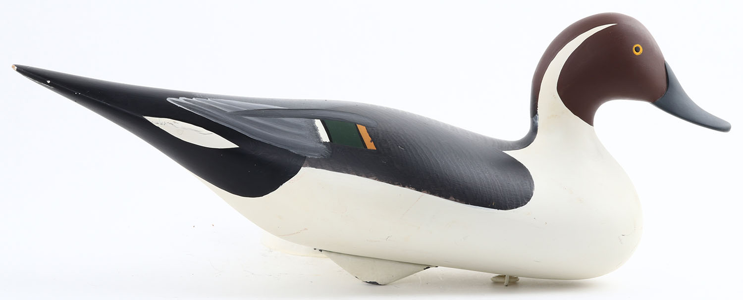 Pintail Drake by Andy Zielinski, Chase, MD, painted eyes, solid wood, original paint, structurally excellent, signed on bottom, 18''. Grade: Excellent ++ - Value: 30 to 60