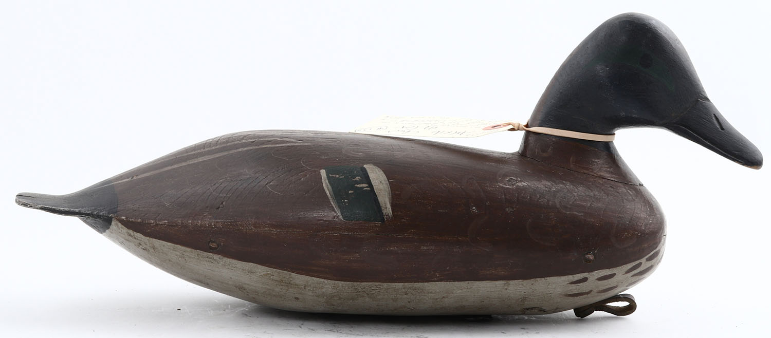 Miniature Canvasback by Michael & Susan Veasey, Delaware, GE, solid wood, original paint, structurally excellent, signed on bottom by maker, 11'' OAL. Grade: Excellent + - Value: 30 to 60