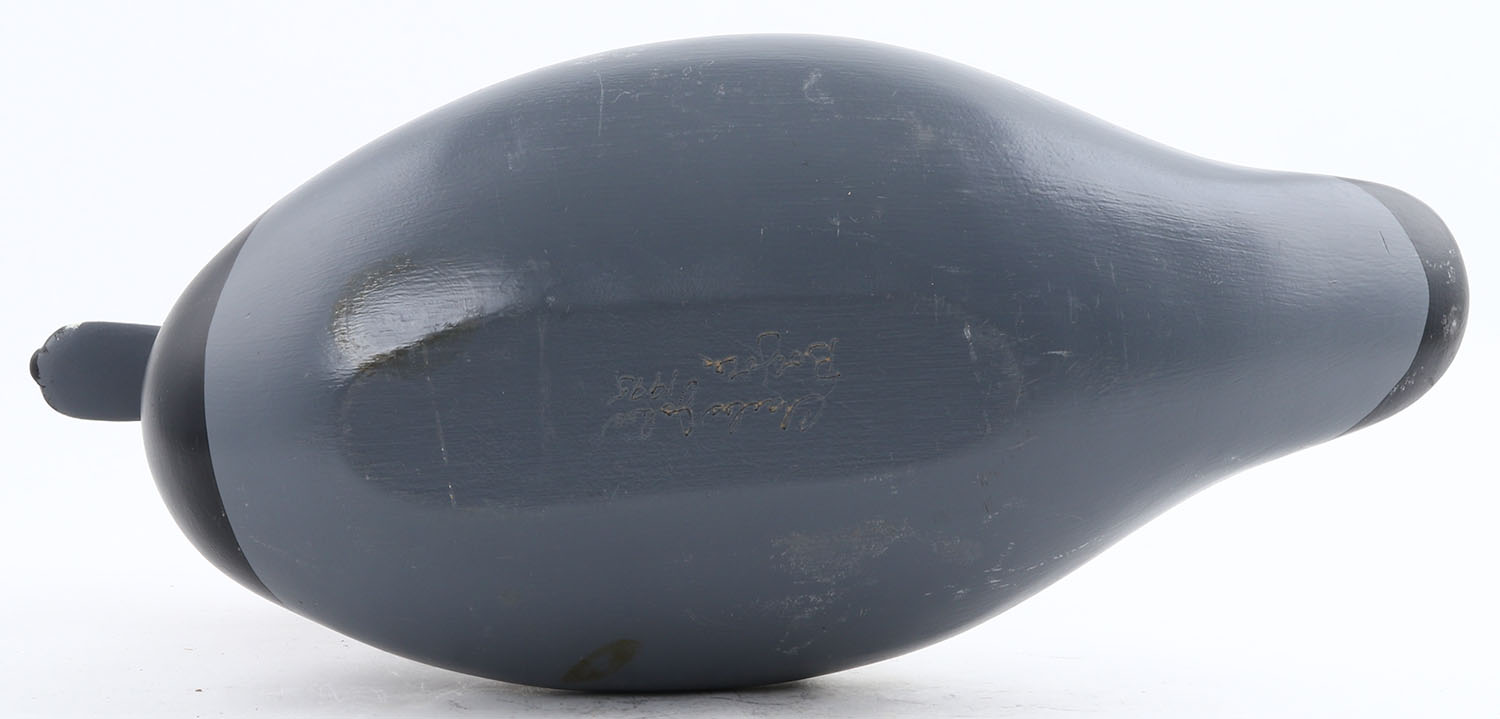 Redhead Drake by Charles Jobes, Havre De Grace, MD, painted eyes, solid wood, original paint, signed on bottom, structurally excellent, 13'' OAL. Grade: Excellent ++ - Value: 30 to 80