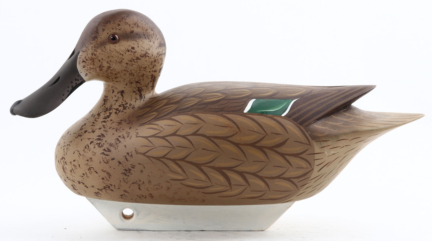 Shoveler Hen by Bill Schauber, Chestertown, MD, glass eyes, hollow wood, original paint, structurally excellent, signed on bottom. Grade: Excellent + - Value: 80 to 250