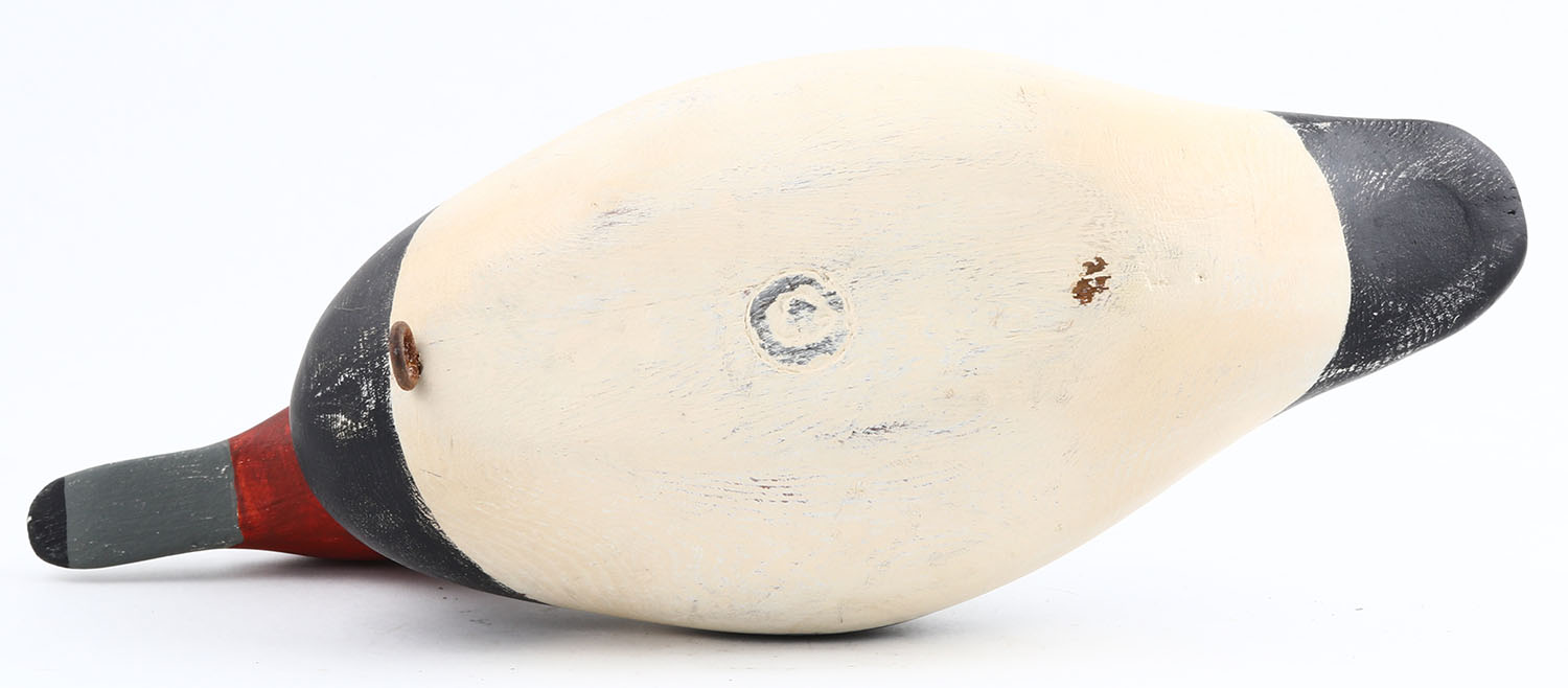 Canvasback Drake by unknown maker. TE, solid wood, original paint, structurally excellent. Grade: Excellent - Value: 30 to 60