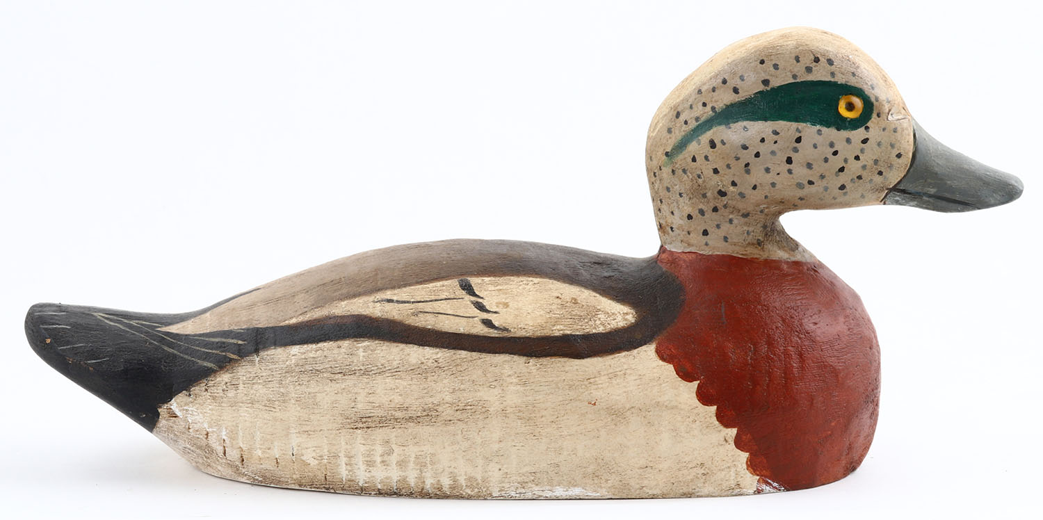 Widgeon Drake by unknown maker, Fair Bluff, NC. GE, solid wood, original paint, structurally excellent. Grade: Excellent - Value: 20 to 60