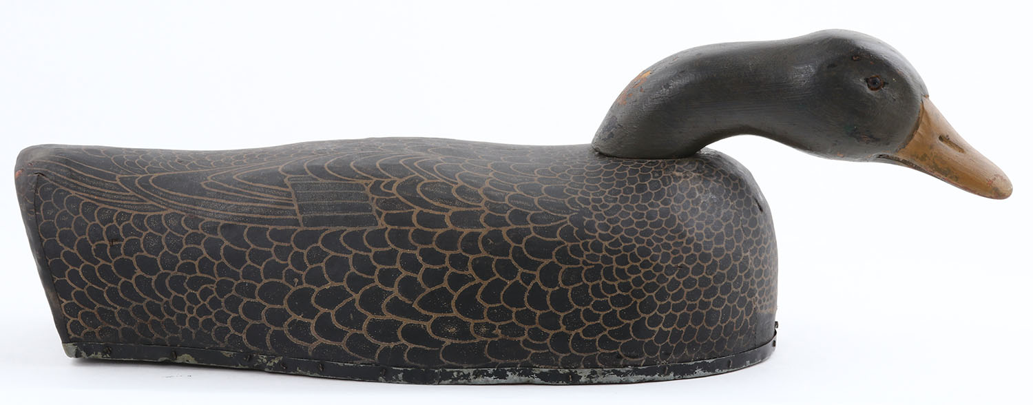 Early Preening Hen Mallard by Herters Decoy Co., Waseca, MN, glass eyes, canvas over cork, original paint, structurally excellent. Grade: Excellent - Value: 40 to 100