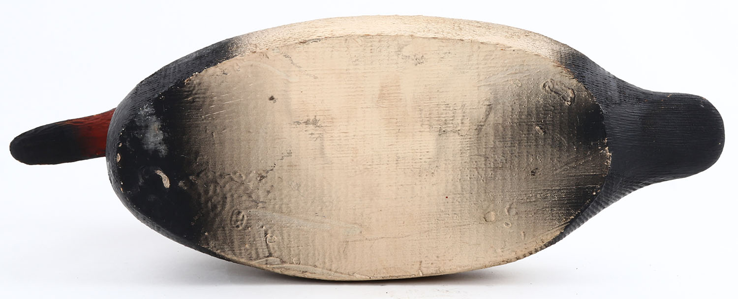 Canvasback Drake by Herters Decoy Co., Waseca, MN, 1893 series, glass eyes, solid wood, original paint, structurally excellent, marked on bottom. Grade: Excellent ++ - Value: 50 to 300