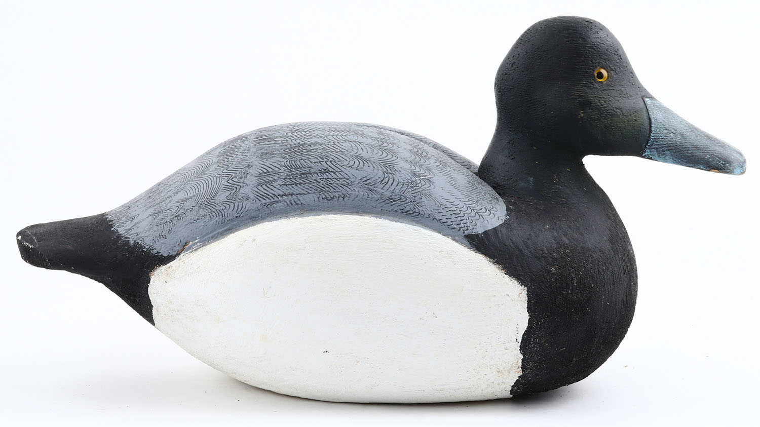 Bluebill Drake by Jim Meidam, glass eyes, solid wood, original paint, structurally excellent. Grade: Excellent - Value: 20 to 80