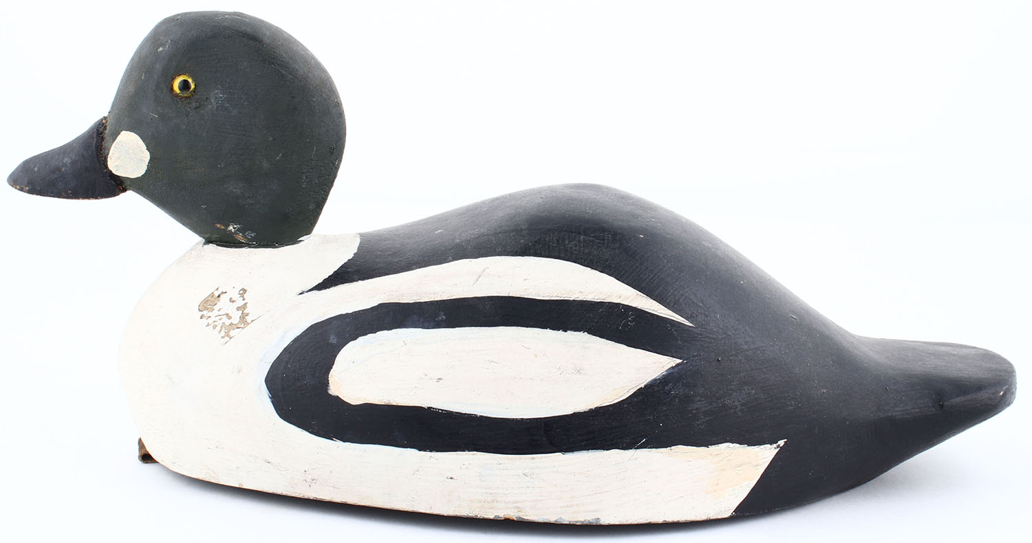 Goldeneye Drake by unknown maker, GE, hollow wood, original paint, structurally excellent. Grade: Excellent - Value: 20 to 80